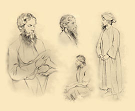 His white hair flowed softly down both sides of his forehead; the tufts of hair under the temples also were long like two beards, and linking up with the hair on his cheeks, continued into his beard, so that he gave an impression, to the boy I was then, of some ancient Oriental wizard.7