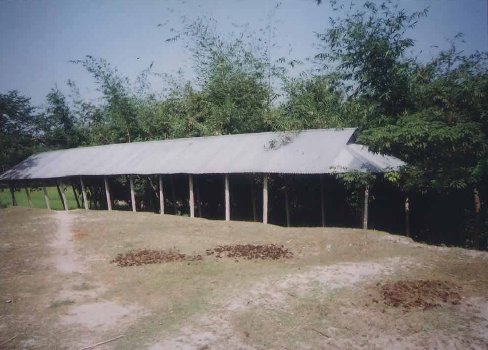 The school campus is very beautiful, an ideal place for a school. It is located on an open rectangular field of ~ one acre high land spread with slightly lengthened north-south. The land was donated by a local well to do cultivator family out of love for education. The family set an good example for all of us by not giving any condition or attaching any string for the donation he made that the school should be named as so and so .. , which our ministers, political elites do in their locality. School started with a single tin-shade cottage with three or four class rooms having a five-six feet verandah erected on the northern side of the field on a mud base one or two feet lower compared to the base of the main filed.  The cottage stands on narrow concrete pillars with bamboo-made fence. A few years back the CARE, an well known NGO, at the request of the local leaders of Khedaimari-Roumari-Kurigram, led by Advocate Amzad Hosain and others constructed two big flood shelters. When the school was established, CARE handed over the two buildings to the school authority permanently to be used as school buildings at the request of the school committee. Two buildings, identical in construction, erected on heavy concrete pillars with tin-shed and fence made of also tin. The school committee made the necessary modification to convert the buildings as school buildings. Each building has 4 classrooms of 15x15 sq.ft. plus a office; each class room was furnished with bench and chairs and black board. In one word, school had all the minimum facilities. Unfortunately the local people failed to provide necessary financial support to run the school. And flood devastation caused suspension of the school activities, though not completely. However many students left it because better poor condition of the school.